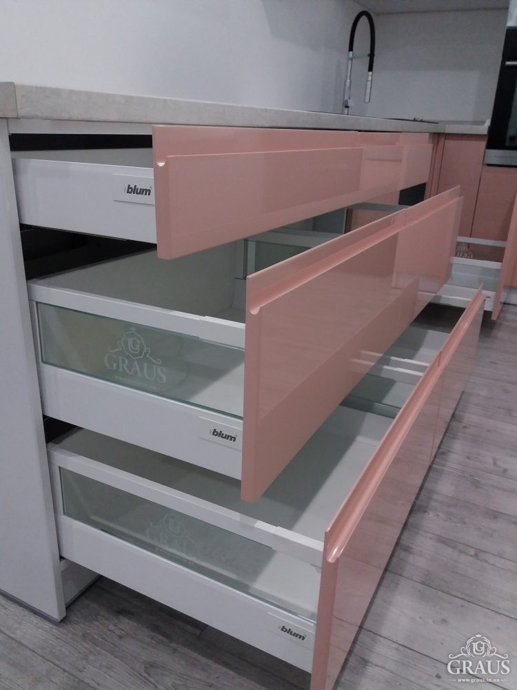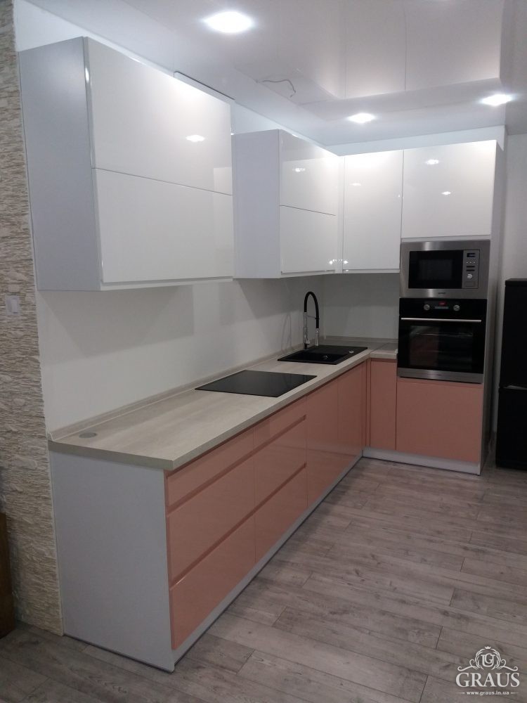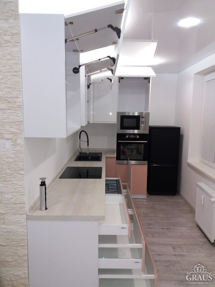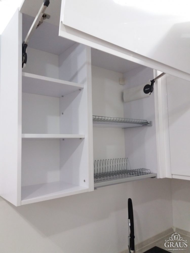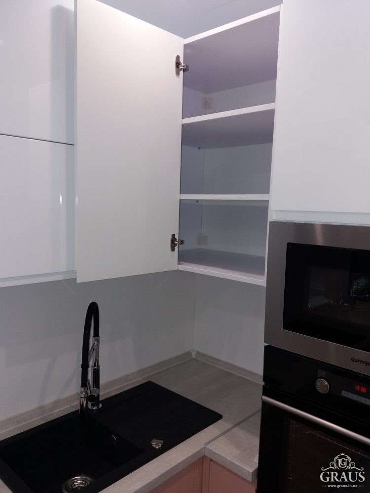 Фасад – МДФ краска глянец, фурнитура Blum, Hettich. Столешница luxeform. Плинтус Rehau.